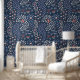 Papel Pintado Flores moderadas, mariposa, azul, patrón blanco