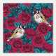 Patrón vectorial dibujado a mano con flores rosas y aves doradas. Todos los elementos del patrón se dibujan primero con tinta sobre papel y luego se vuelven a dibujar y colorean en Illustrator.