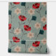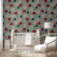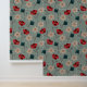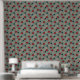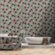 Papel Pintado Flores rojas y verdes abstractas en gris