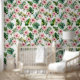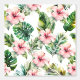 Papel Pintado Flores rosadas de Hibiscus, hojas verdes tropicale