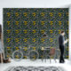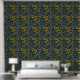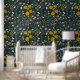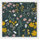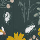 Una hermosa mostaza dibujada a mano y ilustraciones de flores silvestres de tierra acompañados de escarabajos y abejas. Un diseño inspirado en un diseño de flores silvestres bohemias con colores neutros sobre un fondo azul oscuro. Un diseño ideal para la decoración casera, los regalos personalizados y la decoración de oficina. Perfecto para todo aquel que ame los ilustraciones florales dibujados a mano, el arte floral y botánico oscuro y húmedo.