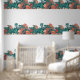 Papel Pintado Flores silvestres Naranja floral verde hojas verde