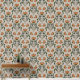 Papel Pintado Flores simétricas de Art Nouveau naranja