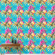 Papel Pintado Flores tropicales isleña azul patrón costero