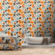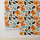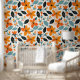 Papel Pintado Flores y follaje azul y naranja