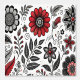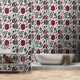 Papel Pintado Flores y hojas de perro en rojo y negro