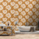 papel pintado con motivos de flores de bonito y hojas para elevar la decoración de tu casa o apartamento. Blanco con hojas y fondo de caramelo claro.