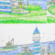 Faro imaginario dibujado a mano con fondo de pantalla azul