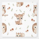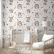 Transforma la habitación de tu hijo en un bosque mágico con este encantador papel pintado de animales del bosque. Este patrón sin fisuras presenta personajes adorables e ilustrados a mano, incluyendo un cervatillo, un erizo amigable, una ardilla esponjosa y un búho sabio, rodeados de hongos acogedores y hojas rústicas.