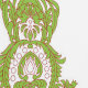 Este diseño presenta un diseño floral intrincado y ornamentado. El diseño presenta arreglos simétricos de elementos de tipo vid con hojas y flores delicadas. Los colores predominantes son los verdes, con toques de rosa y blanco, creando una composición armoniosa y elegante. El diseño es muy detallado, con una línea muy compleja y florecimiento decorativo. Parece ser un diseño clásico y tradicional, con reminiscencias de papel pintado o patrones textiles.