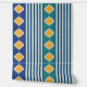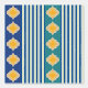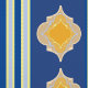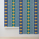 Mezcla elegante de formas marroquíes amarillas sobre rayas azules o verdes más azules Este diseño es una toma única de las formas marroquíes. Las franjas azules alternas son más tranquilizadoras y menos "ocupadas" que las que utilizan las baldosas marroquíes por sí solas