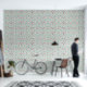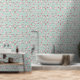 Papel Pintado Gato de Kawaii y patrón floral en azul