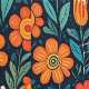 El azul y el naranja de los gatos y las flores son arte de ai.
