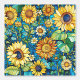 girasoles amarillos, hojas verdes, vibe Klimt