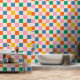 Este papel de pared super divertido presenta un patrón de tablero de ajedrez maximalista en naranja, amarillo, kelly verde, rosa, azul y marfil. ¡Ideal para las habitaciones o los baños de los niños o para los niños en el corazón!