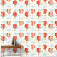 Patrón de guardería con globos de aire caliente de rayas rojas, nubes azules y estrellas suaves.