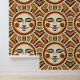 Un sol vintage radiante con una cara sonriente, de estilo Art Déco. Los rayos solares son ondulados y se alternan en longitud, pareciéndose a una estética bohemia. El diseño presenta tonos tierra como el naranja quemado, el amarillo mostaza y el marrón profundo, con un suave matiz texturado que le da un aspecto artesanal y envejecido. Perfecto para un ambiente de papel retro.