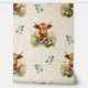 Granja animal de montaña vaca con vegetación floral sobre fondo de crema moteada.