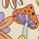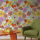 This playful retro wallpaper features a lively mix of bold flowers, whimsical fruit, and quirky botanical elements inspired by classic 1970s “flower power” style. Drawn with clean outlines and filled with warm, cheerful colors, the design blends vintage charm with a fresh, modern feel. A soft neutral background allows the colorful motifs to pop while keeping the overall look balanced and inviting. Perfect for adding personality and joy to creative interiors, this pattern brings a nostalgic yet contemporary vibe to any space that calls for color, character, and retro flair. Search ID929 to see other design in this unique design set.