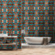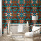 Papel Pintado Groovy negrita Patrón de cobre retro turqués