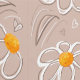 Pattern of cheerful flower doodles on taupe pattern by designer, Kim Niles. ©️Kim Niles, KiniArt™️ - All Rights Reserved