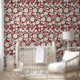 Papel Pintado Hermoso ornamento floral blanco sobre fondo rojo
