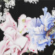 La decoración de este producto es un hermoso patrón floral de rosas, Iris y vegetación sobre fondo negro - Colores: rosa, azul, verde, negro, blanco