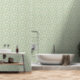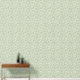 Este papel tapizado presenta hojas botánicas acuáticas en tonos verdes sobre el beige, para dar un aire relajante.