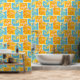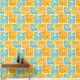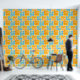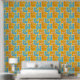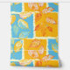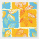 Esta obra de arte presenta un patrón vibrante y dinámico de hojas de otoño que se muestran dentro de un arreglo de cuadrículas de bloques coloridos. Las hojas se representan en tonos naranjas, amarillos y rojos, con detalles venosos intrincados que agregan textura y profundidad. Los bloques de fondo se alternan entre el azul audaz y el naranja cálido, creando un contraste sorprendente que realza el tema estacional. El diseño combina una estética gráfica moderna con la belleza natural del follaje otoñal, lo que da lugar a una composición animada y atractiva.