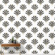 Patrón de abanico de hojas palmetto inspiradas en el arte vintage de los años 20 en negro con acentos amarillo bronce.