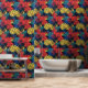 Papel Pintado Hojas tropicales de color turquesa amarillo rojo