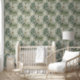 Papel Pintado Hojas Tropicales de Oro Verde Crema