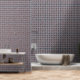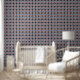 Este fondo de pantalla geométrica presenta una pequeña impresión de formas simétricas marrones realzadas por pétalos de flores rosadas. La impresión tiene detalles que recuerdan a vidrios manchados. Aunque se puede usar en las paredes, este patrón particular forma parte de una colección de papeles pintados de piel y pegatina hechos específicamente para los cajones de forro, la parte posterior de los estantes y otras superficies de mobiliario.