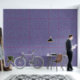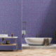 Este fondo de pantalla geométrica presenta una minúscula impresión de formas pitagóricas rojas, violetas y azules. La impresión tiene detalles que recuerdan a vidrios manchados. Aunque se puede usar en las paredes, este patrón particular forma parte de una colección de papeles pintados de piel y pegatina hechos específicamente para los cajones de forro, la parte posterior de los estantes y otras superficies de mobiliario.
