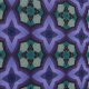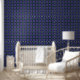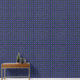 Este fondo de pantalla geométrica presenta una pequeña huella de cruces moradas, índigo y verde azuladas. La impresión tiene detalles que recuerdan a vidrios manchados. Aunque se puede usar en las paredes, este patrón particular forma parte de una colección de papeles pintados de piel y pegatina hechos específicamente para los cajones de forro, la parte posterior de los estantes y otras superficies de mobiliario.