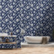 Papel Pintado Jardín de medianoche - Azul y blanco - Tradicional