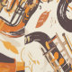 Transforme tu espacio con este papel pintado vibrante con un patrón de saxofón, trompeta y notas musicales sobre un fondo beige. Perfecto para los amantes de la música y con un toque de diseño en cualquier habitación.