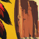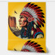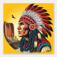 Retrato nativo americano de jefe que mira lejos en un desértico paisaje salvaje sobre fondo de atardecer, Ilustracion vector original Copyright BluedarkArt ElChameleonArt