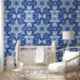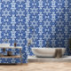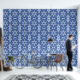Disfrute de este moderno y natural diseño caleidoscopio de nubes blancas onduladas y cielo azul decorando las paredes de su casa.