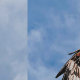 Una elegante cometa roja huyendo contra un cielo nublado de verano. La cometa roja (Milvus milvus) se salvó de la extinción nacional en el Reino Unido y se ha reintroducido en Inglaterra y Escocia.