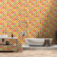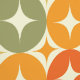 Se trata de elegantes estrenos modernos de mediados de siglo sobre círculos geométricos coloridos en rojo, naranja, verde oliva, amarillo y rosa. Es un papel tapiz de gran calidad para cualquiera que retro diseños geométricos