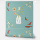 Simple ilustracion mínimo de flores de otoño en un frasco sobre un fondo verde menta.