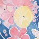 Un patrón impecable con lonchas de limón de color pastel y flores adorables sobre un fondo azul claro. El diseño combina tonos suaves y refrescantes con elementos florales encantadores, creando un efecto visual caprichoso y alegre.