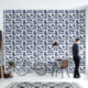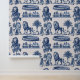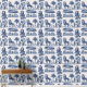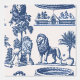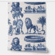 Este lujoso tapiz presenta un conjunto de leones y arbustos que se asemejan a la sabana y están hechos al estilo de la tinta azul.