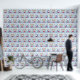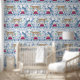 Papel Pintado Leopard Peacock Chinoiserie Floral Azul y Blanco