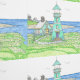 Papel de fondo de escritorio imaginario dibujado a mano sobre el faro cian