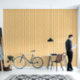 Diseño sencillo y elegante, líneas verticales de naranja sobre fondo amarillo
