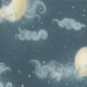 Representaciones oníricas de la luna en varias fases enclavadas en nubes giratorias.
