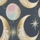 Transforme su espacio en un paisaje de ensueño celeste con este papel tapiz de luna y estrellas. Lunas de media luna dorada, acentuadas con delicados detalles florales, brillan contra un cielo estrellado azul profundo, creando una atmósfera mágica y cautivadora. Este papel pintado de pelos y palos es fácil de aplicar y eliminar, por lo que es perfecto para añadir un toque de encanto a cualquier habitación.