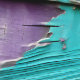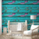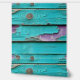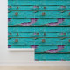 Falso madera con aflicción en azul turquesa y púrpura con un efecto de pintura retorcido con un patrón de palo repetido y papel tapiz de cáscara.